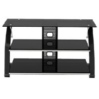 Display a flat-panel plasma or LCD television in style on this sleek and sturdy TV stand from the innovative minds at Z-Line Designs. Designed for 65-inch screens or smaller, the Vitoria TV stand boasts a 150-pound weight capacity. The TV stand features a strong metal frame with black powder coat finish. Users can adjust the angle of the screen for optimum viewing with the stand’s swivel mount. For holding DVD/BluRay players, video game systems, stereo, and more, the TV stand provides three shelves. The shelves’ open air design allows air to circulate around the electronic components to increase safety. Crafted in 8mm and 6mm black tempered safety glass, the shelves benefit from chrome cylinder supports for extra stability. Pre-installed slots in the TV stand enable tidy cable management. For home assembly, the TV stand comes equipped with hardware and instructions. Z-Line Designs also offers similar Vitoria TV stands with integrated mounts. Made in China, this item is covered by a limited lifetime warranty. The assembled TV stand measures 55 inches wide by 24 inches deep by 23 inches high. This item weighs 93-3/4 pounds upon shipping.