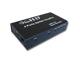 The latest ViewHD splitter v1.3 certified with 3D support. Split one input to four outputs.Genuine ViewHD HDMI 1x4 splitter sold by J&R Galaxies. ViewHD splitters are the best on the market. Feature: * Support one to four outputs at the same time * Support 3D video (To get 3D, all units connected to the splitter outputs must support 3D) * Support deep color 30bit, 36bit and XvYCc * Support various audio formats (Note: To get Surround Sound, all units at the outputs must support the selected surround sound format) * Support Blu-Ray, HD-DVD players for 24fs film format (Note: If you enjoy watching 24fs film, display must support 24fs, otherwise it will display 50/60fs pictures) * Support CEC * Support input cable distance up to 15m HDMI AWG26 * Support output cable distance up to 25m HDMI AWG26 * Support HDMI signal retiming, no loss of quality * Include DC5V 100-240V universal power adapter with US plug * Operating Temperature Range: -15C to +55C * Operating Humidity Range: up to 90 RH (No Condensation) * Serviced by J&R Galaxies 30 day no restocking fee return policy, free lifetime technical support, and ViewHD one year warranty Additional Info: * Light Status: output light will be RED if the content is not HDCP protected; BLUE if the content is HDCP protected; No light means output is not active. * Per HDMI protocol, unit with the lower video and audio formats connected to the single HDMI video source will be supported. This is determined by HDMI video source unit, not determined by HDMI Splitter.* For example: 1) The HDMI video source will send 720P video out if two display units connected to the splitter outputs are 1080P and 720P; 2) The audio format will be stereo if the TV connected to the splitter output can only do stereo (most TVs can only deliver stereo sound)